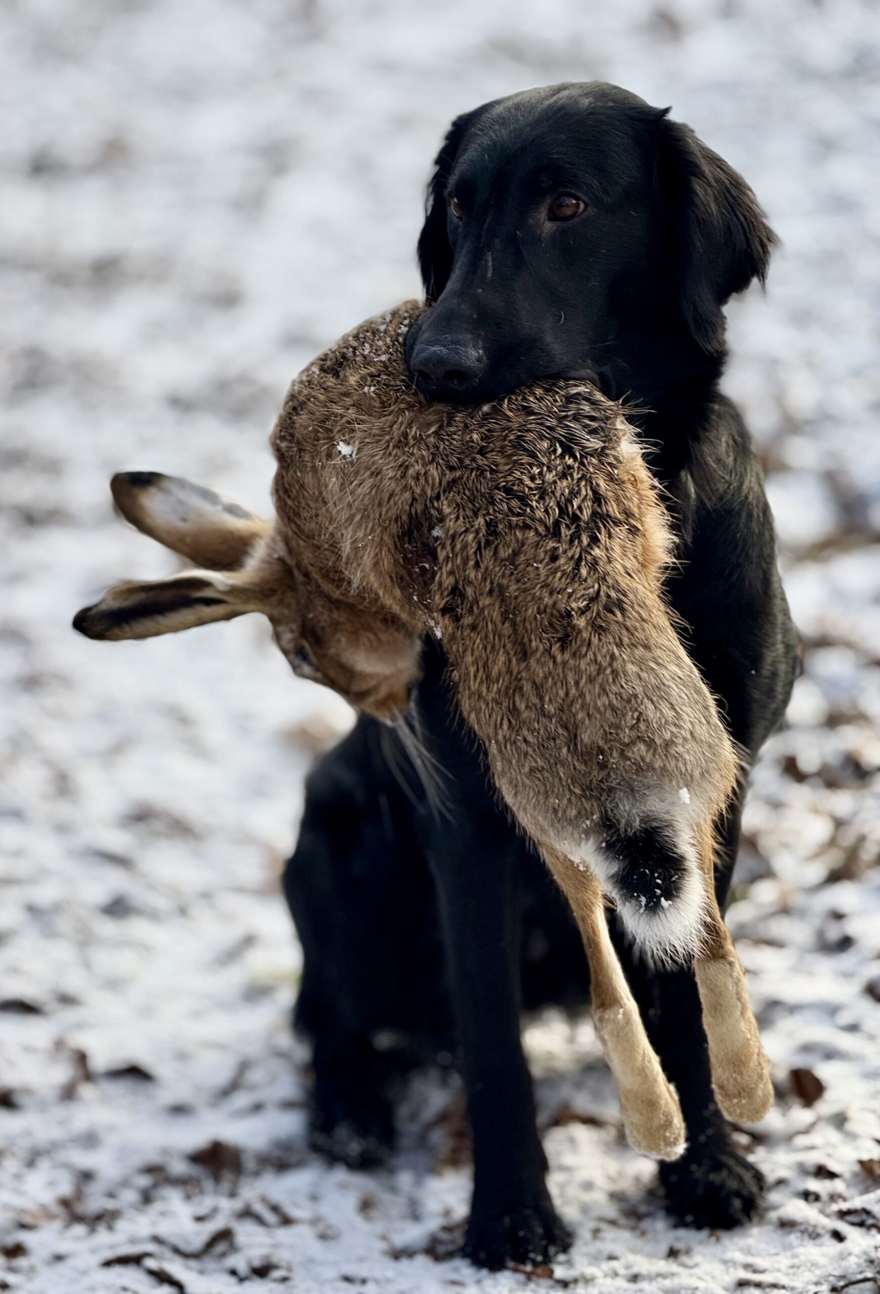 2 Jahre sind, seit dem ich Frost aus Norwegen abgeholt habe, vergangen. Aus dem kleinen Welpen ist ein junger Rüde geworden. Ein verlässlicher, anhänglicher kleiner Kerl, der immer bereit ist etwas mit einem zu unternehmen. Er ist genügsam, ruhig und gelassen, er kann und will überall hin mitkommen. Er hat immer noch ein junghundähnliches, überschäumendes Temperament, ist aber sehr gehorsam. Auf der Jagd lässt er sich von allem abrufen, er kommt zuverlässig und bringt zuverlässig. Dadurch dass er aber immer alles gibt, ist er durchschnittlich öfter verletzt. Dieses Jahr waren es 2 langwierige Verletzungen. Eine Verletzung am Vorderlauf und eine im Auge, was eine Durststrecke von 3 Monaten nur an der Leine laufen mit sich brachte. Er hat das aber tapfer gemeistert. Hoffen wir 2025 haben wir mehr Glück.